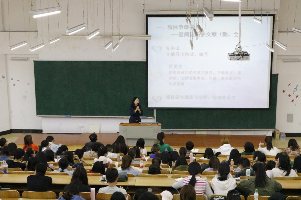 校大学生创新创业训练计划项目管理办公室陈寅平从项目背景、相关政策、过程管理、项目安排、管理系统使用等方面进行了详细的讲解。药学院邢志华从指导教师角度就大创项目开展过程中的常见问题与大家进行了交流。
