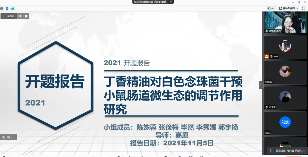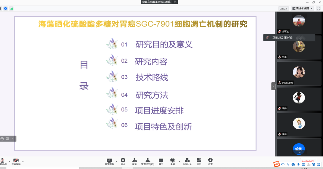 由于疫情防控要求,药学院于2021年11月5日下午14:00,2021年大学生创新创业训练计划创业实践项目开题答辩在腾讯会议线上顺利举行。学院邀请了綦峥,于大海,凌娜,李钧,刘斌,胡杨,高原,吕江维等老师担任答辩专家。