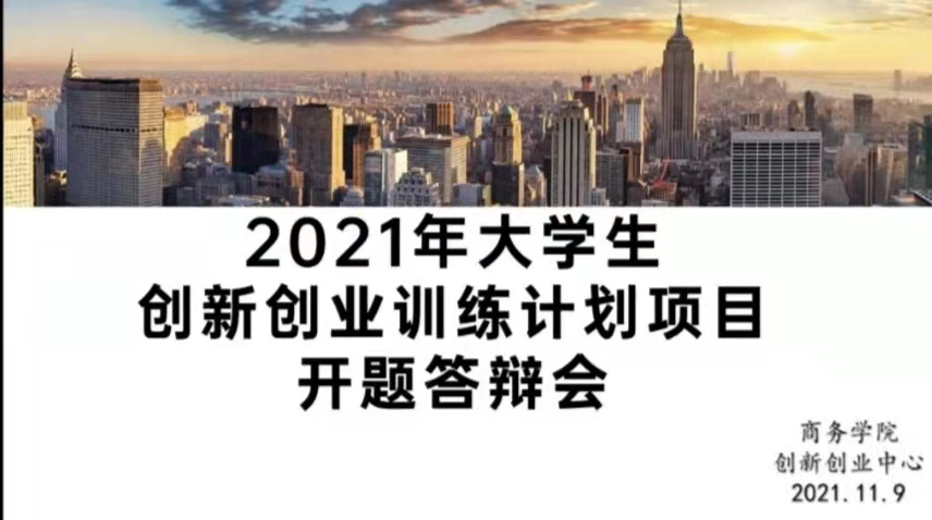 11月9日上午,商务学院以腾讯会议形式举办2021年大学生创新创业训练计划项目开题答辩会。王艳红老师,张鑫瑜老师,刘艳莉老师以及杜泽文老师应邀作为评委,出席本次开题答辩会。七名大学生创新创业计划立项项目负责人以及他们的团队队员30余人参加开题答辩会。