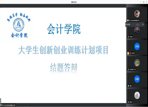 2021年11月22日,会计学院结合学校疫情防控要求,通过腾讯会议的形式线上开展2020年大创项目结题答辩会。按照学校要求,学院组成专家评审组对2020年的项目进行统一检查和验收。答辩会中,学院邀请贾绍华副院长担任专家组组长,学院的梁运吉副院长及李文、徐晶、郑磊、白璐、李沐瑶老师作为答辩组成员也参加了结题答辩会。
