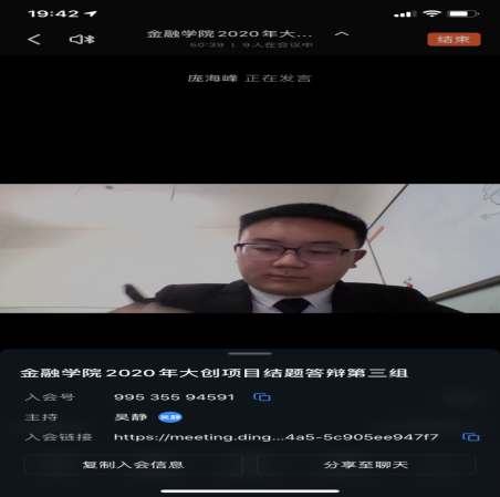 金融学院2020年大创项目立项18项,其中国家级4项、省级一般12项、校级2项。根据线上结题答辩的要求,各项目组制作并向专家展示了结题汇报的PPT,对项目的完成情况进行了陈述,并逐一回答专家提出的问题。各位专家着重对项目结题材料的完整性、项目研究的工作量、项目成果的数量及级别、项目经费使用情况的合理性、研究报告(或创业计划书)的内容及撰写规范性、项目结题验收书的内容等进行把关,与学生进行了深入的交流,帮助项目组找出问题并提出相应的改进建议。最后,各答辩小组组长均对金融学院2020年大学生创新创业训练计划项目的结题验收情况给予了较高评价,在肯定各项目组成员的工作和取得的成果的同时,也鼓励和要求各项目组继续完善结题材料,以认真严谨的态度把结题工作做完做好。