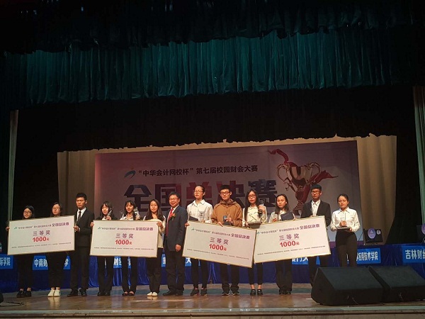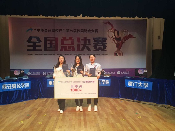 我校代表队决策果断,配合默契,经过激烈的比拼,由会计学院14级会计学(CPA方向)专业韩巍巍、15级审计学专业肖雅文、14级会计学专业陈雪娇三位同学组成的代表队获得“中华会计网校杯”全国总决赛三等奖。