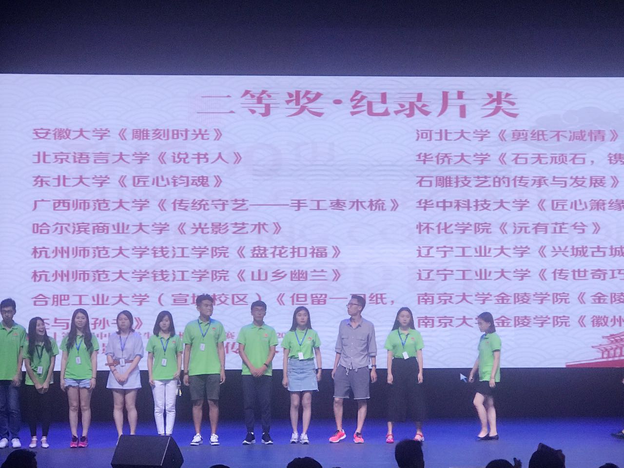 本届比赛共设置了软件应用与开发、数字媒体设计、微课与教学辅助等10个类别。我校派出了经由省级比赛选拔出来的4支参赛队参加了其中三个类别的国家比赛。在计算机与信息工程学院指导教师们精心指导和参赛学生的认真努力下,取得了两个二等奖和两个三等奖的国赛好成绩。分别是:由韩雪娜等教师指导的作品《光影艺术》获得数媒设计微电影组(纪录片)二等奖;由张艳荣等教师指导的作品《常见呼吸系统疾病管理信息系统》获得软件应用与开发类二等奖;由程涛等教师指导的作品《在线打印系统》获得软件应用与开发类三等奖;由金一宁等教师指导的作品《人与爱犬》获得数媒设计动漫游戏组(动画)三等奖。