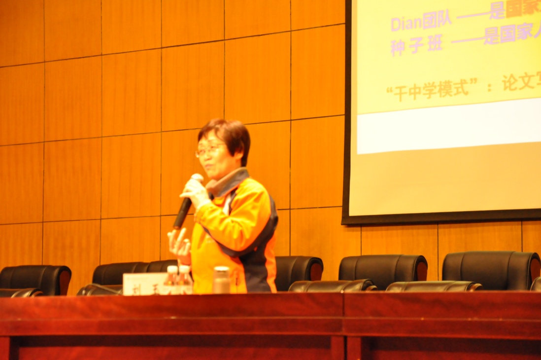 刘玉老师介绍了2002年创建的本科人才孵化站-Dian团队的成长经历,分享了她18年坚持如一地扶持本科生开展创新创业活动并取得了可喜的成果。刘玉老师强调要加强学生的道德教育,让学生学会做人;同时,实践是创新之源,用项目做牵引,督促学生在干中学,在实践中锻炼提升自己。她还诠释了本科生在校期间如何培养创新思维、开展有实效的创新活动的途径和方法,教会学生如何在参与科研实践的同时提高综合素质和培养团队精神,并为学生如何由创新过渡到创业进行了生动的案例讲解,为在场师生提供了宝贵的经验。