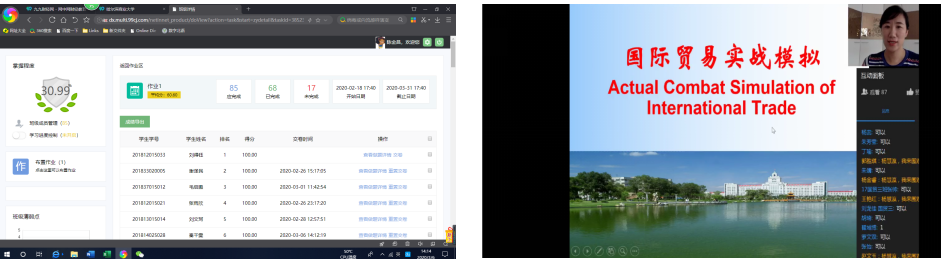 时间不变,空间转换。《会计信息系统》、《国际贸易实务》等11门实验(实训)课的老师、同学们通过智慧树、腾讯会议、钉钉等软件,以录播、语音直播、视频直播、微信QQ群辅导、课后布置作业等多种形式组合,在线进行课堂签到、讲解、互动、讨论、答疑等教学活动,所有实验(实训)课程任课教师均按照教学计划安排,如期开展教学工作。