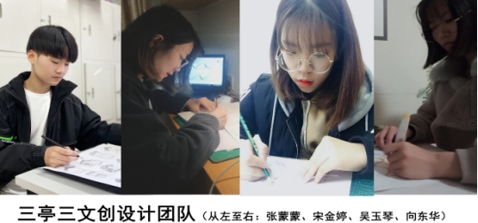 接到求助的当天下午,欧阳老师立刻着手组织已经返乡过年的大创工作室的同学们,在微信群里远程布置了设计任务,连夜和创作团队进行方案讨论和设计指导。欧阳安老师指导的大创团队成员主要是来自设计艺术学院产品设计专业16级和17级的学生,16级的宋金婷、吴玉琴、张蒙蒙、张文静是欧阳安老师从一年级一直辅导的优秀成员,在18年完成的大创项目中设计的哈商大文创纪念品就参加了首届东北亚文博会,并广受好评。现在运行三亭三大学生省级创业项目又加入了来自17级的向东华作为项目负责人,在欧阳安老师指导下寒假也一直在产品设计专业的实习基地制作项目产品包装。