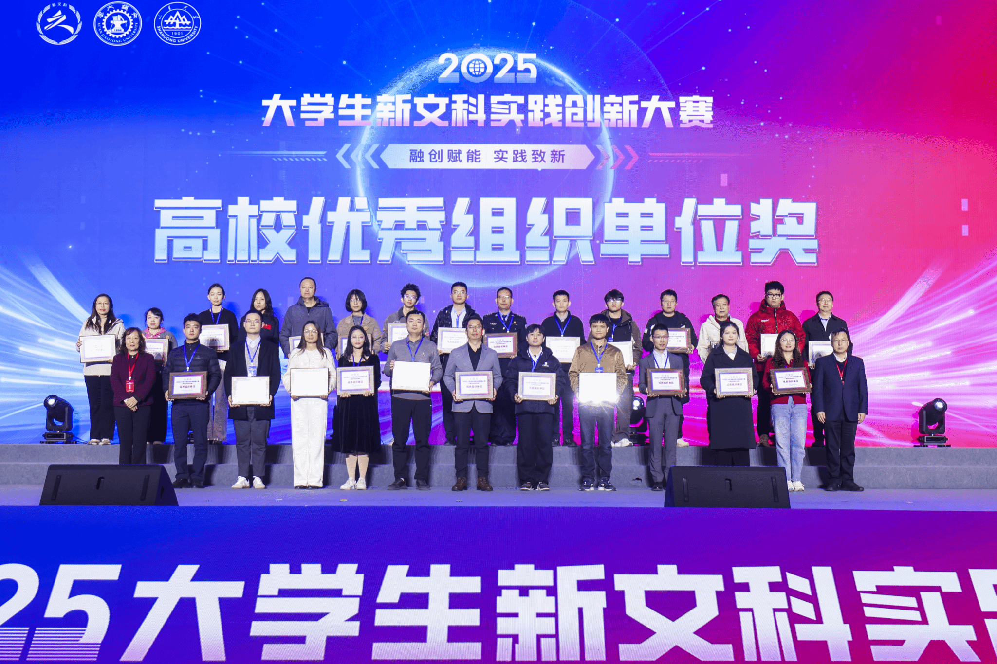 近日,2025年大学生新文科实践创新大赛全国总决赛在西安交通大学圆满落幕。经过激烈角逐,我校参赛团队表现优异,共斩获银奖5项、铜奖3项,同时我校因竞赛组织工作突出,荣获"高校优秀组织单位奖",充分彰显了学校在新文科实践创新领域的深厚积淀与育人成效。
